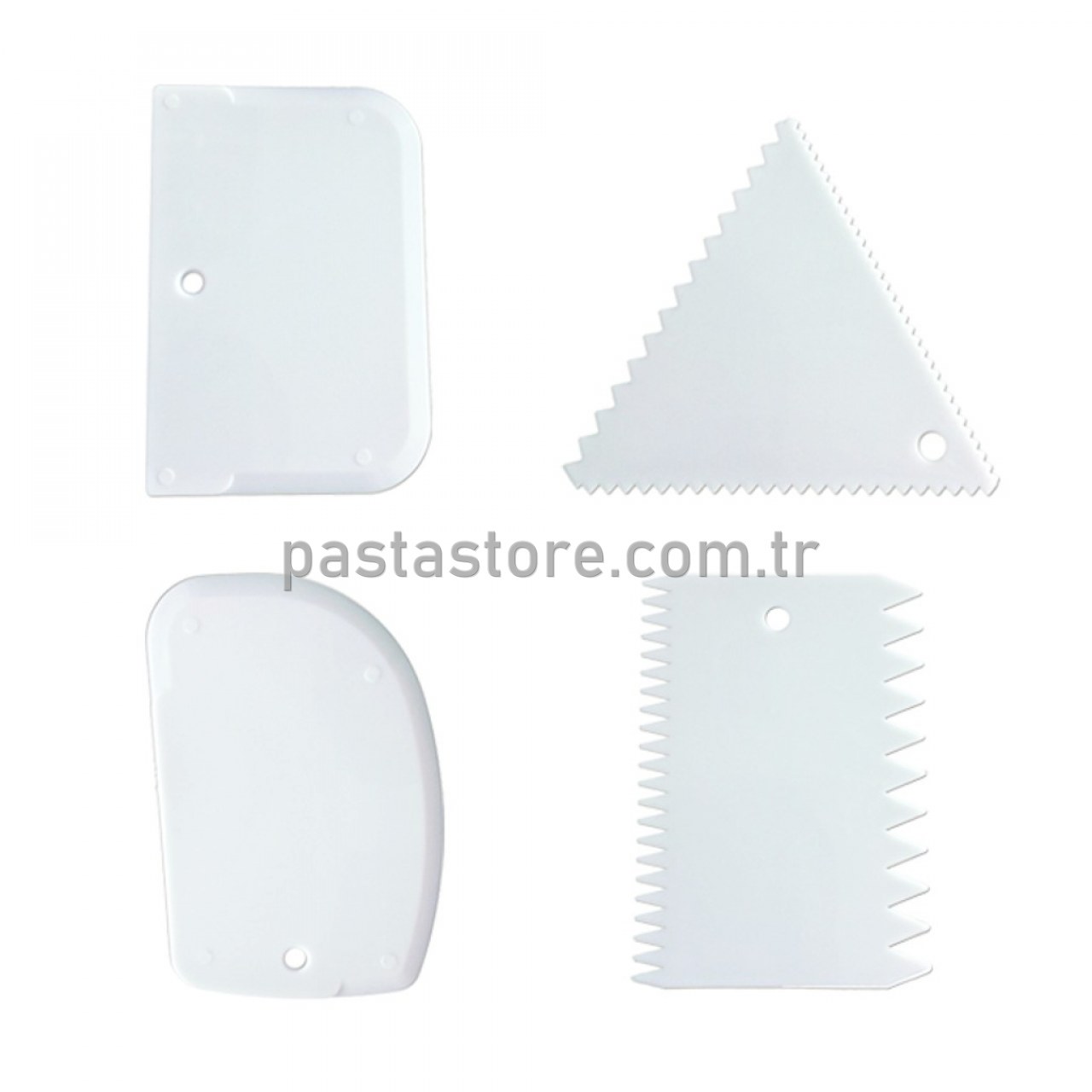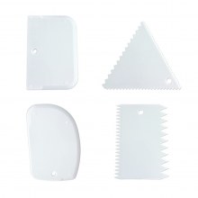 4 farklı modelden oluşan plastik hamur kazıyıcıları aynı zamanda hamur karıştırıcı ve kesici olarak kullanabilir, milföy,pasta, hamur şekillendiricileri ile hamurlarınıza çok özel şekillendirmeler yapabilirsiniz.