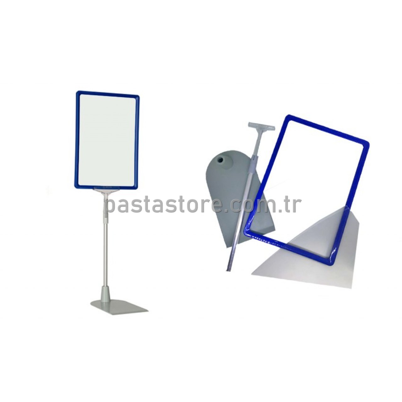 Ayaklı Çerçeve ; Mağaza ve market içerisinde ki ilan, duyuru, fiyat bilgilerinizi taşır. Ürün çerçeve, alüminyum boru, palet ayak ve kağıt koyucu şeffaf asetat olmak üzere 4 parça halinde size gelecektir. Çerçeve içine kağıdınızı koyabilir alüminyum boru yardımıyla çerçeve yüksekliğini müşterilerinizin görebileceği biçimde min. 35 cm max. 65 cm olmak üzere ayarlayabilirsiniz. Ayaklı Çerçevede alüminyum boru ve palet ayak sabit kalmakla beraber çerçeve 360° sağa ve sola dönmektedir. Palet ayak, ayaklı çerçevenizi yükselttiğinizde devrilmemesi için ürünlerin arasına konulabilir. Ayaklı Çerçevede çerçeve boyutunuzu A6, A5 ve A4 olarak seçebilir, yatay ve dikey kullanabilirsiniz. Ayaklı Çerçeve, market ve mağaza içerisindeki indirim veya insört ürünlerinin satışını arttırmaya yönelik olup sizlere fiyatlandırmada kolaylık sağlayacaktır.