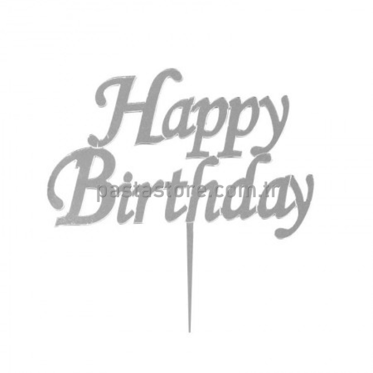 Happy Bhirtday Gümüş Pasta Üstü Pleksi 14cm
