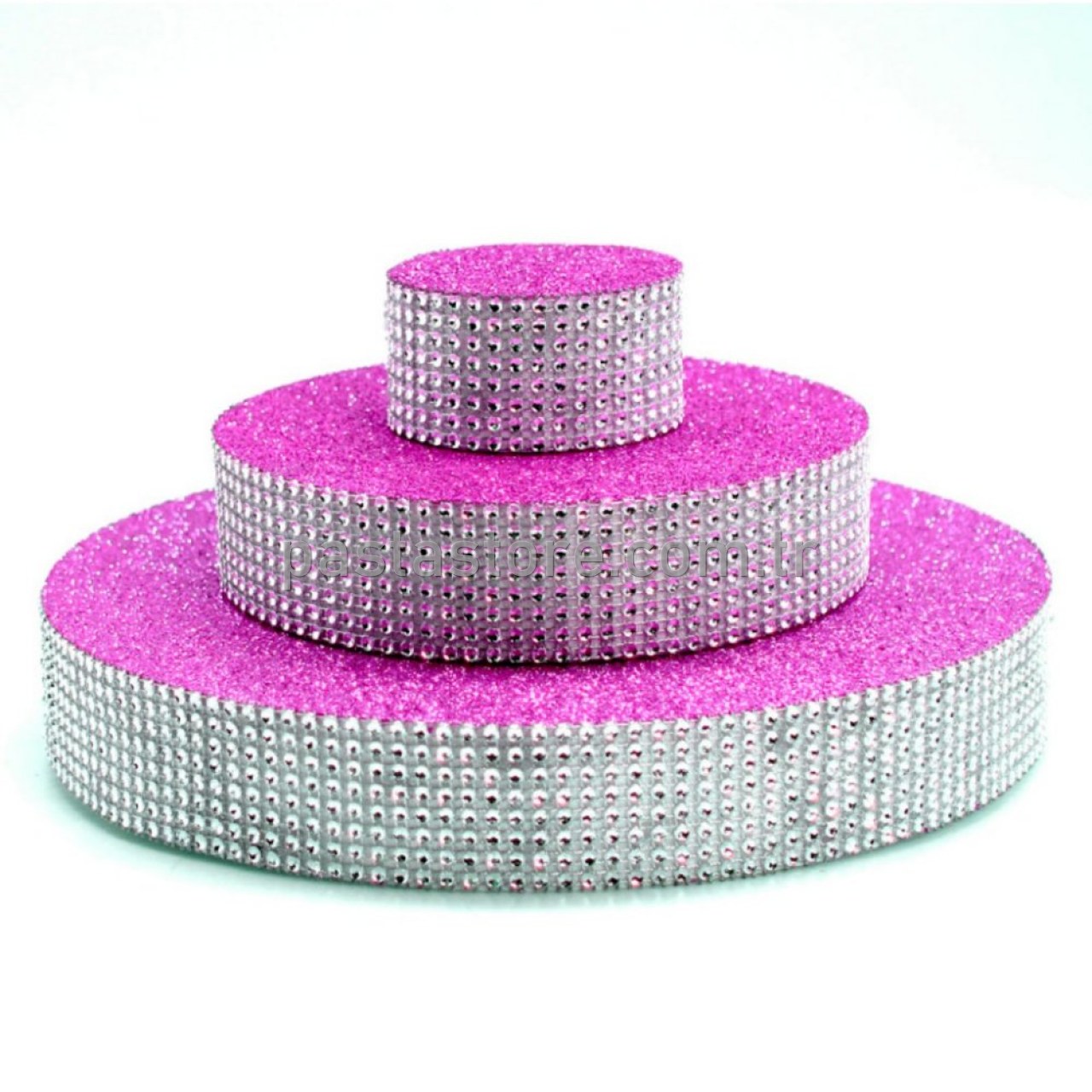 Strafor Pasta Standı Gümüş Renk Taşlı 3 Katlı. Partilerinizde, özel günlerinizde masanıza ışıltı katabileceğiniz strafor (köpük)'dan yapılmış dekor pasta. Işıltılı şerit taşlarla süslenmiş olan strafor standın üzeri gümüş renkte simlerle kaplıdır.